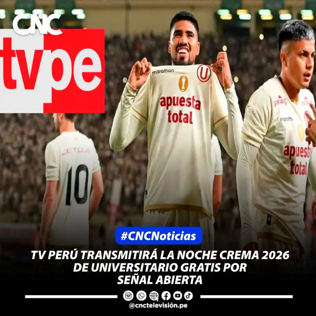 #Deportes || TV Perú transmitirá en vivo y de forma gratuita la Noche Crema 2026, el evento de presentación de Universitario de Deportes. Cinthia Ramírez, jefa institucional del Instituto Nacional de Radio y Televisión del Perú (IRTP), confirmó que el canal 7 tendrá la transmisión exclusiva del espectáculo, destacando que esta iniciativa forma parte de la política de promoción y fomento del deporte en el país. Franco Velazco, administrador de Universitario, señaló que es un honor llevar la Noche Crema a todas las regiones y que el club se convierte en el primero en transmitir su partido de presentación por señal estatal.