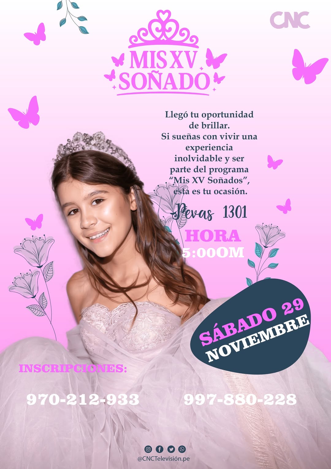 Ven con tu mejor actitud, tu sonrisa y muchas ganas de cumplir tu sueño de princesa. 💖 ¡No faltes! #MisXVSoñados #CastingCNC #IquitosIslaBonita