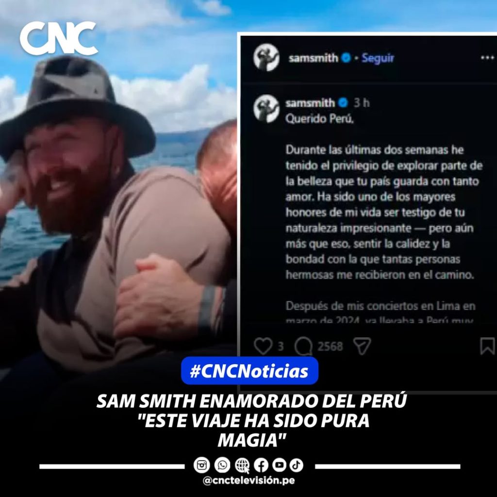 #Internacional #celebridad || El cantante británico Sam Smith expresó su profundo cariño por el Perú tras compartir en redes sociales imágenes de sus recientes vacaciones en el Amazonas, Cusco, Machu Picchu y el lago Titicaca, donde pasó la Navidad y el Año Nuevo 2026. A través de una emotiva carta, el artista destacó la belleza natural del país y la calidez de su gente, recordando también el concierto que ofreció en Lima en 2024 y experiencias como conocer un perezoso en libertad, nadar cerca de un delfín rosado y disfrutar del té de muña. “Este viaje ha sido pura magia”, escribió Smith, quien agradeció el recibimiento y manifestó su deseo de regresar pronto al Perú.