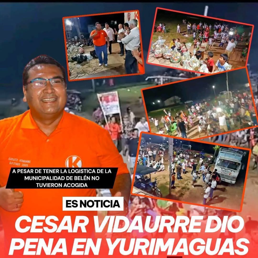 El exalcalde de Belén, César Manuel Vidaurre Florida, actualmente candidato al Congreso por dicha organización política, llegó a Yurimaguas acompañado de los también postulantes Brunner “Chupadita” y Juan Carlos del Águila «El Buenazo». Sin embargo, la asistencia fue mínima y el evento no consiguió llenar siquiera el pequeño escenario instalado para la actividad.