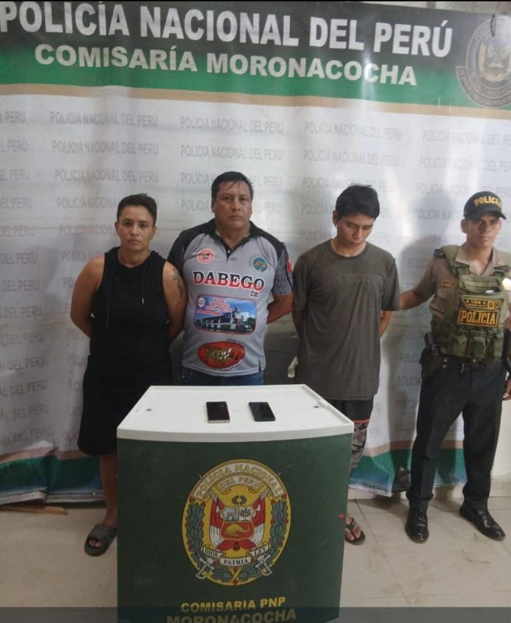 Durante la intervención se detuvo a Alexis Nizama Pérez (18), alias «Sapito» por el presunto delito contra el patrimonio – robo agravado, así como a Tedi Sajami Salas (42) alias «Paton» y Andrea Patricia del Águila Reátegui (26), alias «Macho» por el presunto delito de receptación, en agravio de Wilson Andrés Mendoza Nacimento (22), asimismo se recuperó dos celulares de alta gama.