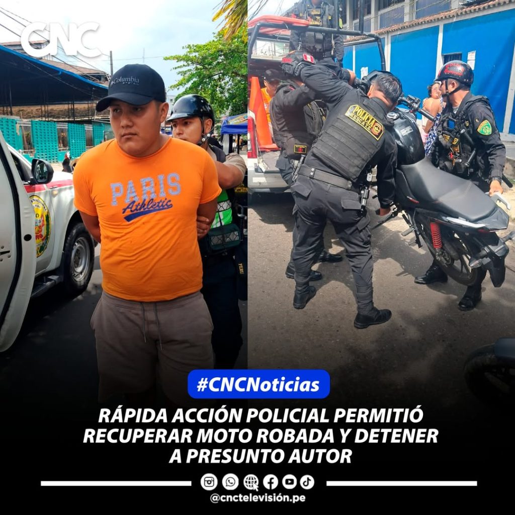 #Iquitos #noticias || La Comisaría PNP Iquitos recuperó una motocicleta robada y detuvo al presunto autor del hurto agravado, Roy Armas Inuacari (23), alias “Bolon”, tras un operativo inmediato en la calle Calvo de Araujo, cuadra 6, distrito de Iquitos. El delito se habría cometido en agravio de Iván de la Cruz Mananita (27).