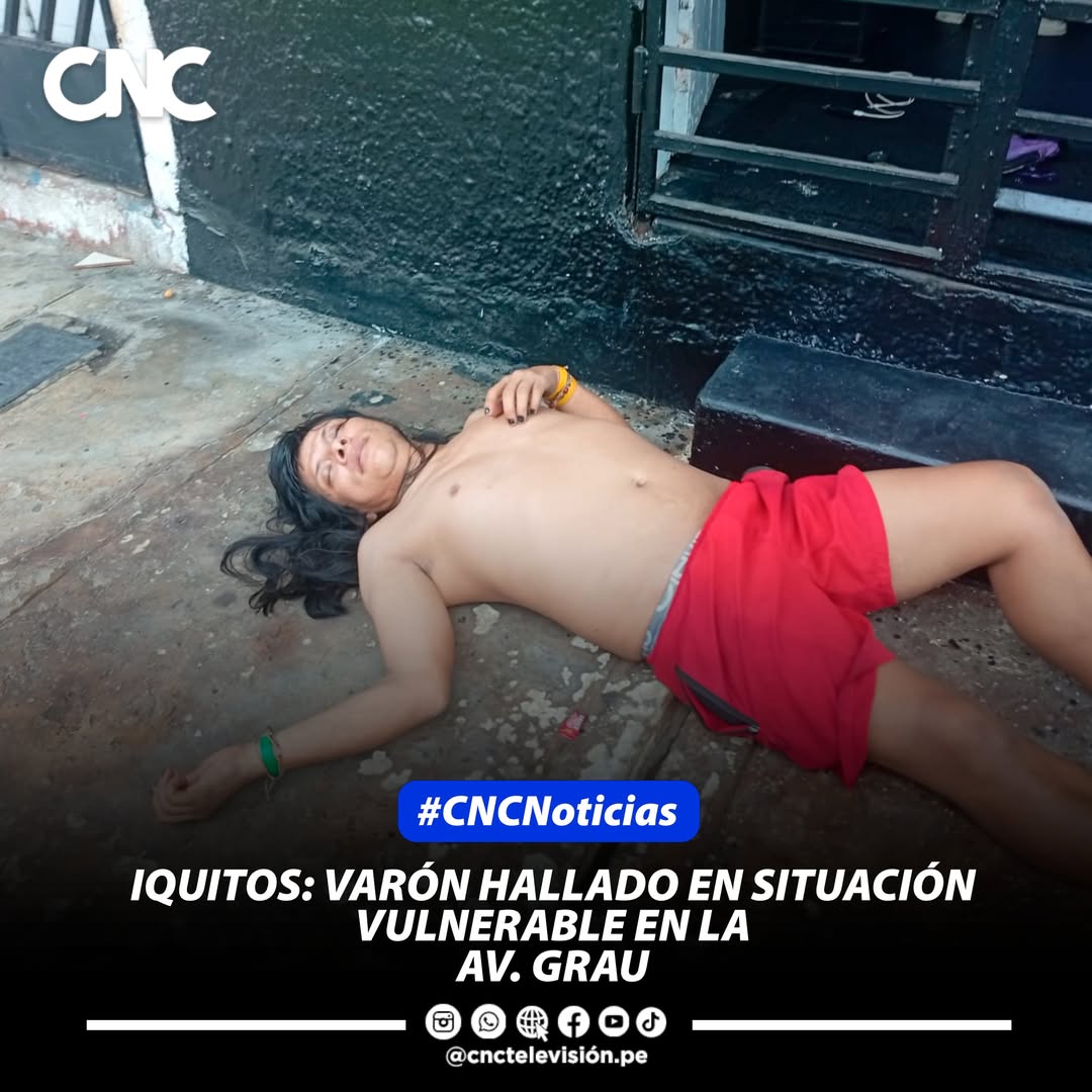 #Iquitos || Un hombre fue encontrado semidesnudo en la cuadra 13 de la Av. Grau, en Iquitos, presuntamente víctima de un incidente relacionado con pepeo. Vecinos de la zona dieron aviso a las autoridades para brindarle ayuda.