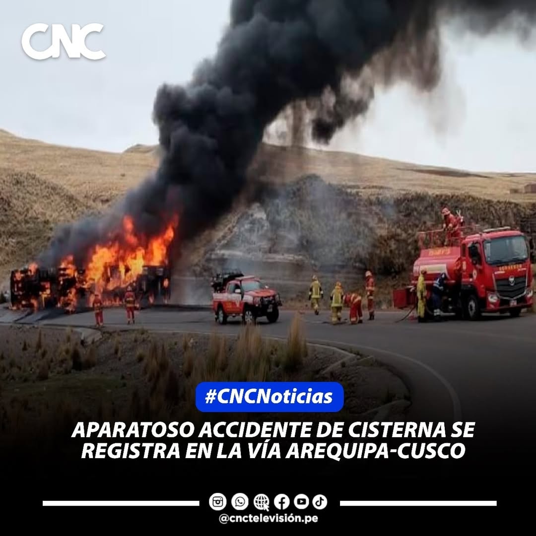 Un camión cisterna que transportaba combustible volcó y se incendió esta mañana en el desvío de Kanamarca, sobre la carretera Espinar–Sicuani, en la región Cusco. El siniestro ocurrió aproximadamente a las 06:30 horas cuando la unidad, que venía desde Arequipa con destino a Cusco, sufrió un despiste que provocó su volcadura y la posterior ignición de la carga inflamable que llevaba.