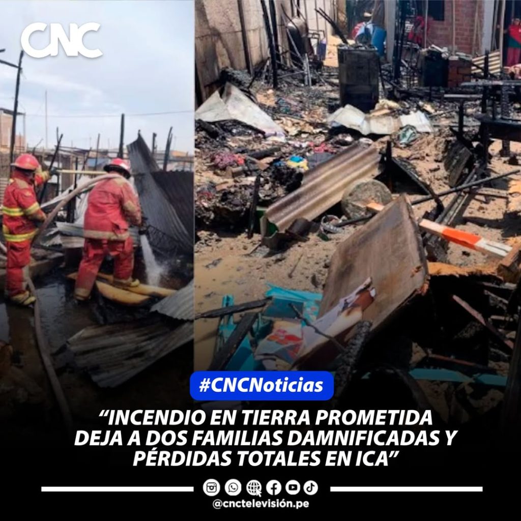 Un voraz incendio de grandes proporciones se registró la mañana del 2 de enero de 2026 en el asentamiento humano Tierra Prometida, sector Vivienda Digna, en Ica, dejando como saldo a dos familias completamente damnificadas que lo perdieron todo. El siniestro se inició alrededor de las 7:00 a. m., y, según los vecinos, las viviendas, construidas con materiales altamente inflamables, quedaron reducidas a cenizas en poco tiempo.