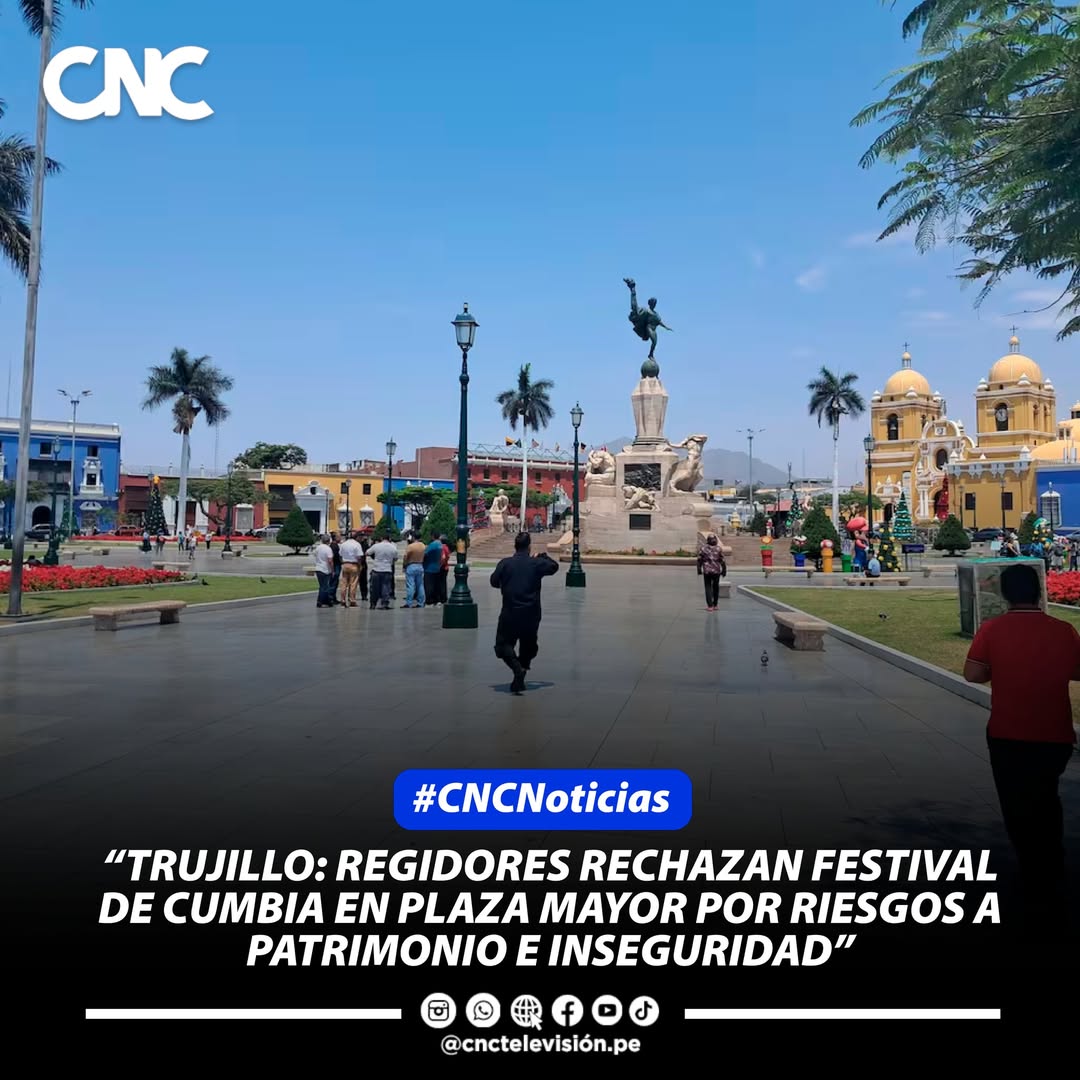 Varios regidores de la Municipalidad Provincial de Trujillo manifestaron su oposición a la posibilidad de realizar un festival de cumbia en la Plaza Mayor de la ciudad con motivo del 205 aniversario de la independencia de Trujillo, programado para el 29 de diciembre. Los concejales consideran que una actividad de este tipo, que incluiría la venta de bebidas alcohólicas, generaría aglomeraciones difíciles de controlar y podría dañar la infraestructura de este espacio histórico declarado Patrimonio Cultural de la Nación, además de elevar los riesgos de violencia y desórdenes.