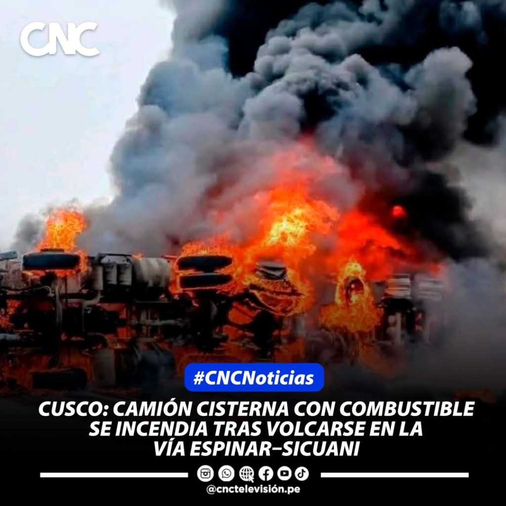 #Noticias #Cusco || Un camión cisterna que transportaba cerca de 8,000 galones de diésel y gasolina volcó e incendió esta mañana en la vía Espinar–Sicuani, a la altura del desvío hacia el Complejo Arqueológico de K’anamarca, en Cusco. El vehículo, de placa B0G-775 y perteneciente a la empresa Servitrans, perdió el control por causas aún en investigación y quedó envuelto en llamas, generando alarma entre conductores y pobladores de la zona.