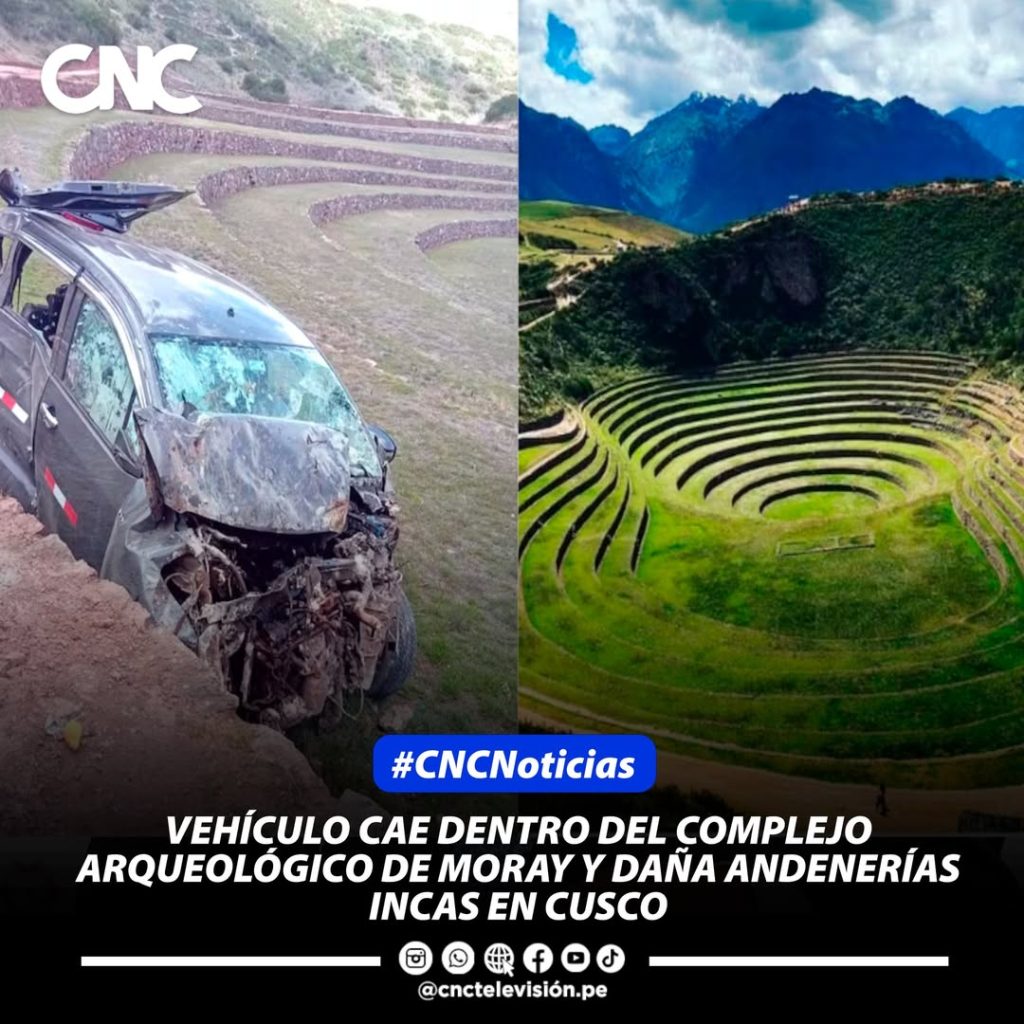 La tarde del sábado, un vehículo particular perdió el control y terminó dentro del complejo arqueológico de Moray, en Cusco, provocando daños irreparables en la andenería del sitio considerado Patrimonio Cultural de la Nación.