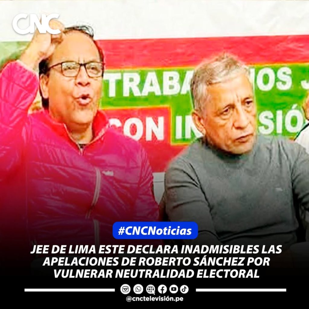 #Noticias || El Jurado Electoral Especial (JEE) de Lima Este 1 declaró inadmisibles las apelaciones presentadas por el congresista y candidato presidencial Roberto Sánchez y dos de sus trabajadores, tras determinarse una presunta vulneración al principio de neutralidad electoral en el marco de las Elecciones Generales 2026. La decisión se sustenta en un informe de fiscalización basado en un reportaje del programa Cuarto Poder, que documentó la participación de dos colaboradores de su despacho en actividades proselitistas con simbología de Juntos por el Perú en noviembre de 2025, en los exteriores del penal de Barbadillo, en el distrito de Ate.