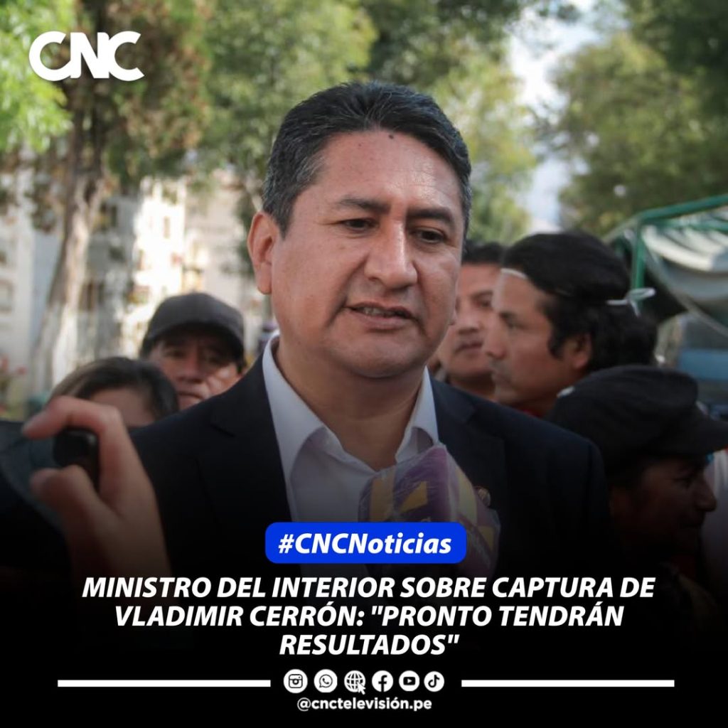 #Noticias || El ministro del Interior, Vicente Tiburcio, aseguró que la Policía continúa trabajando en la ubicación y captura de Vladimir Cerrón, líder del partido Perú Libre, quien cumple 789 días prófugo de la justicia. Consultado por la prensa, el titular del Mininter afirmó que se espera obtener resultados en el corto plazo y pidió comprensión frente a la complejidad de rastrear a una persona que se mantiene activa en redes sociales sin revelar su paradero.