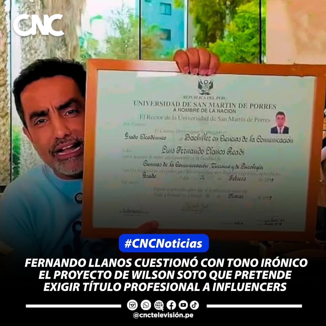 #Noticias #Entretenimiento || Fernando Llanos no se quedó callado y lanzó un mensaje directo tras conocer el proyecto que busca exigir título profesional a los influencers que hablen de temas públicos. Con ironía, el creador recordó que él “tiene bachiller, título y maestría”, dejando claro que seguirá opinando aunque a algunos congresistas no les guste. Llanos cuestionó que la propuesta de Wilson Soto realmente ayude a mejorar la calidad del contenido y llamó la atención sobre el momento en que aparece: a pocos meses de arrancar el clima electoral rumbo al 2026.