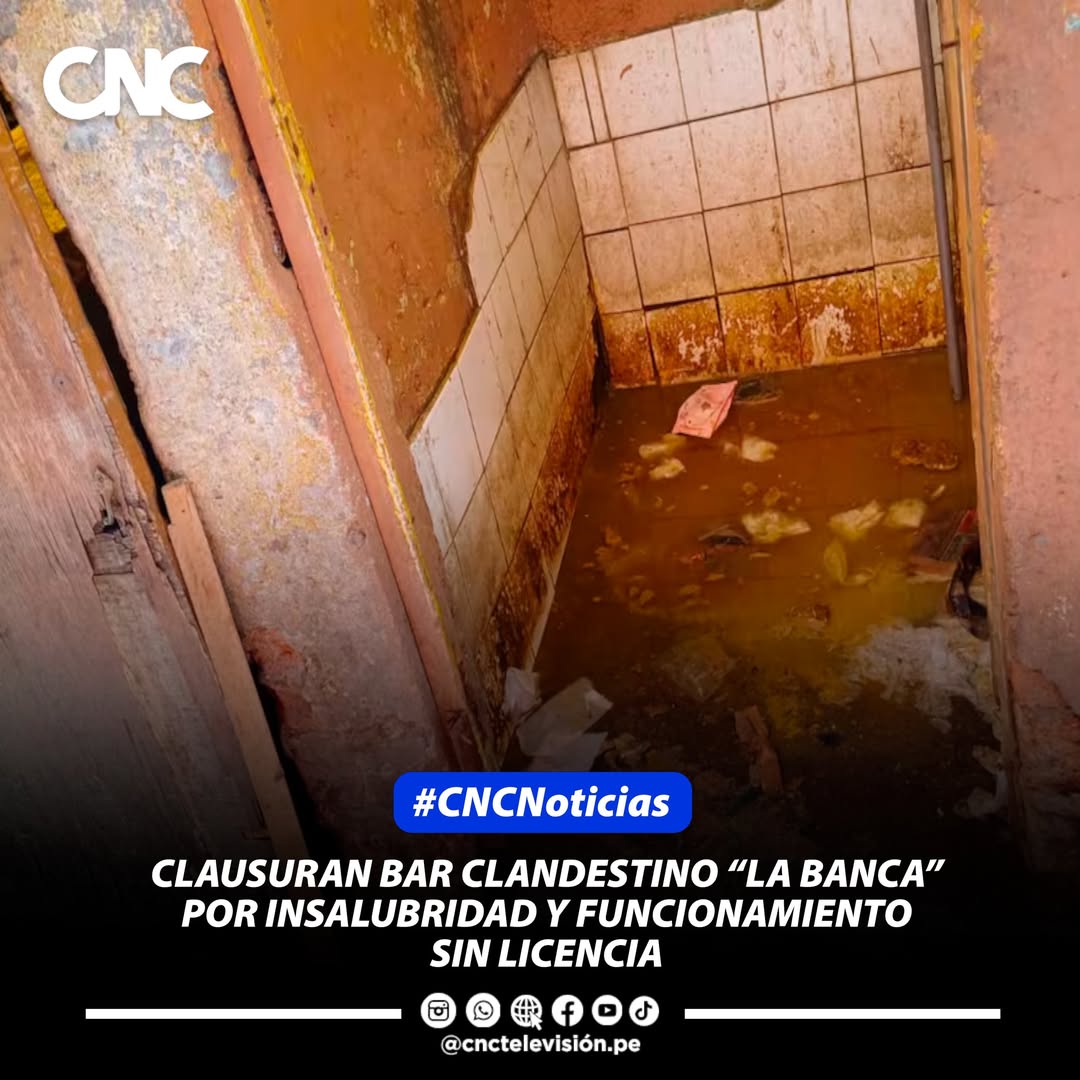 La Municipalidad clausuró y ordenó soldar el acceso del bar clandestino “La Banca”, ubicado en prolongación Cajamarca N.° 176, tras un operativo en el que se encontró a siete personas consumiendo alcohol en condiciones insalubres. Los fiscalizadores hallaron pasadizos sucios, mobiliario deteriorado y confirmaron que el local operaba sin licencia.