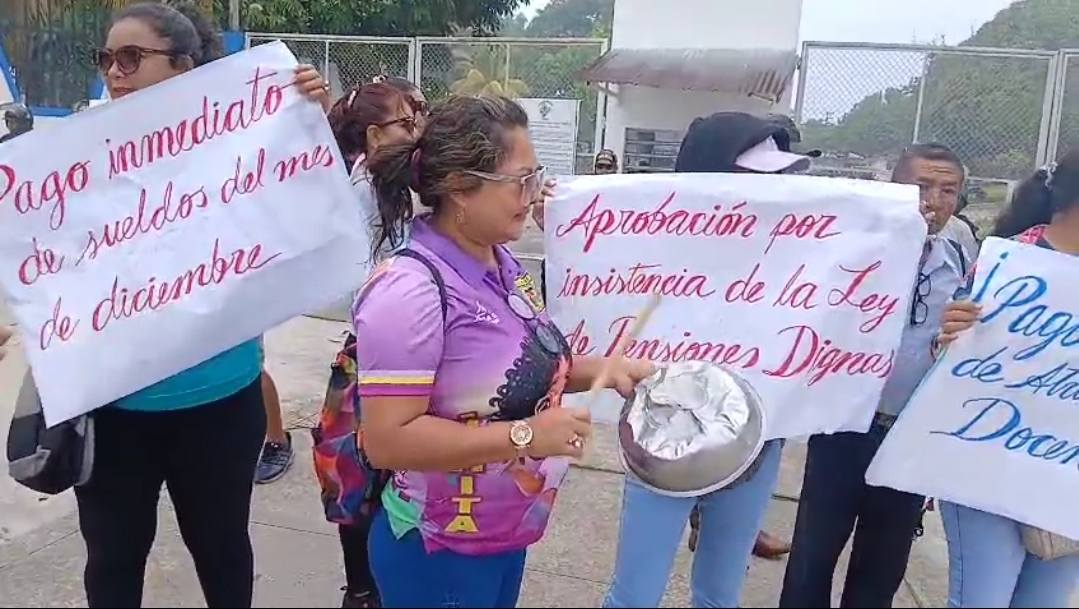 ​Más del 30 % de docentes que aún no han cobrado su sueldo vienen realizando una protesta en el frontis del Gobierno Regional de Loreto. Los maestros exigen el pago inmediato de sus remuneraciones y beneficios pendientes, señalando que esta situación representa una grave problemática que afecta directamente a cientos de familias de la región.