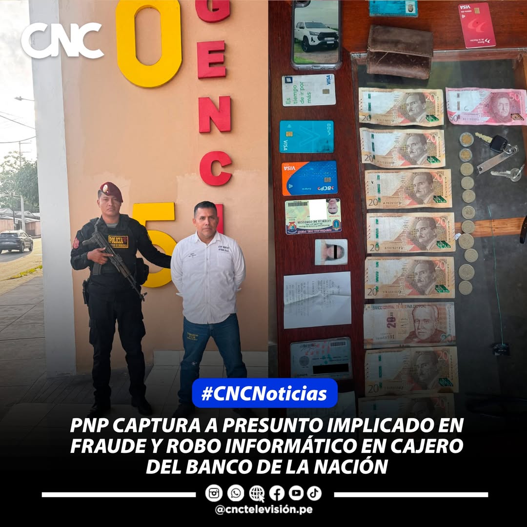 Durante el registro, los efectivos hallaron un dispositivo artesanal consistente en un cintillo con una tarjeta retenida en su interior, presuntamente utilizado para manipular el cajero automático, así como un motokar de placa 7596 EC, marca Motokar, modelo CCG125, de color azul plata. El intervenido, el vehículo, la tarjeta, el dinero recuperado y las especies incautadas fueron trasladados al Departamento de Investigación Criminal, donde continúan las diligencias con participación del Ministerio Público. La Policía Nacional del Perú reiteró su compromiso en la lucha contra los delitos informáticos y exhortó a la ciudadanía a denunciar cualquier hecho sospechoso.