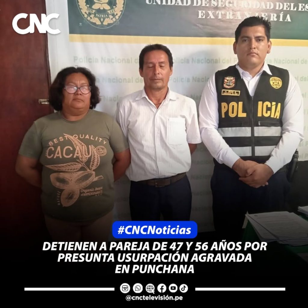 Durante la intervención fueron detenidos Judith Sangama Huaymacari de Gómez, de cuarenta y siete años, y Carlos Alfonso Gómez Ríos, de cincuenta y seis años, quienes quedaron a disposición de la unidad especializada al encontrarse presuntamente implicados en el delito de usurpación agravada. Las diligencias continúan con la participación del fiscal adjunto provincial Claudio Ray Arévalo Alva, garantizando el debido proceso.