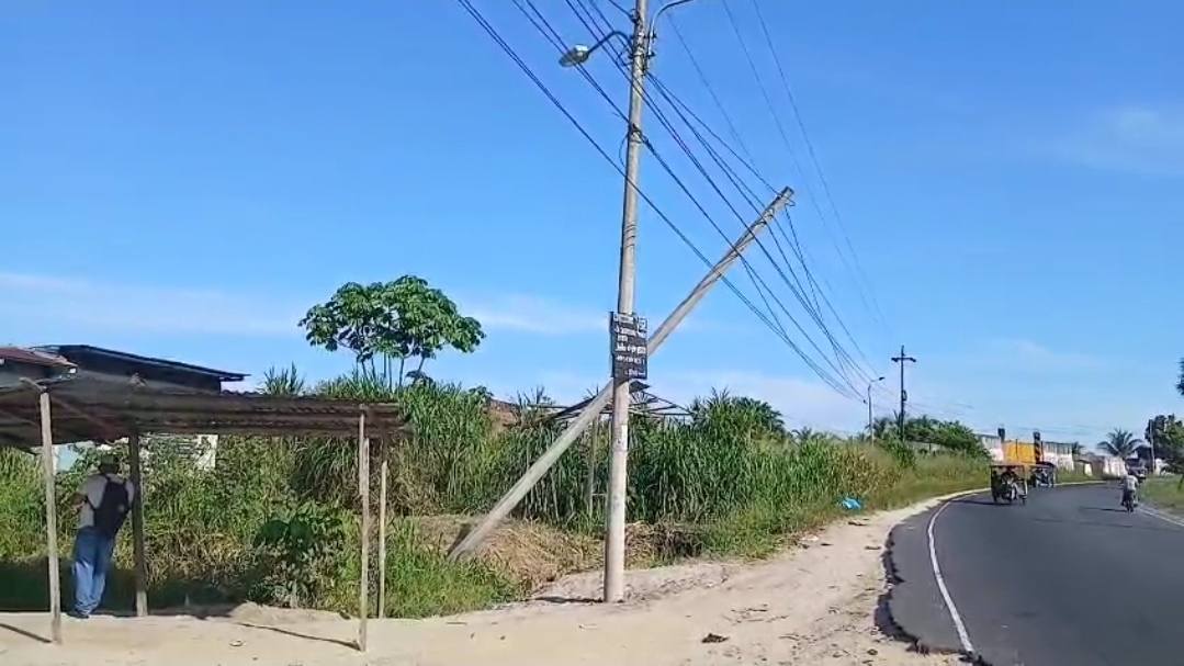 #Noticias || #Iquitos || Poste de empresa de cable colapsa y pone en riesgo el alumbrado público en la carretera Iquitos–Nauta