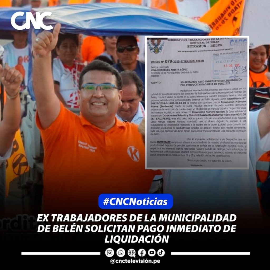 #Noticias || #Iquitos || Un grupo de 96 ex trabajadores de la Municipalidad Distrital de Belén exige el pago inmediato de sus beneficios laborales pendientes. Según la documentación presentada, el monto total adeudado por conceptos dejados de percibir, más los intereses legales, asciende a 877,276 soles. Los ex servidores señalan que estos pagos corresponden principalmente a montos de productividad que no fueron abonados en su debido momento.