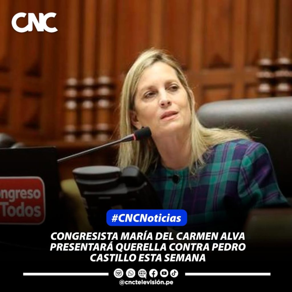 #Noticias || La congresista María del Carmen Alva anunció que presentará esta semana una querella contra el expresidente Pedro Castillo tras las acusaciones públicas del exmandatario, quien afirmó que ella le habría solicitado ministerios a cambio de asegurar su permanencia en el cargo hasta 2026. Alva negó rotundamente las afirmaciones, calificándolas de “distracción” y tildando a Castillo de “cobarde” y “misógino”. La congresista afirmó que la única intención de ella y su bancada fue que Castillo dejara el cargo, al considerarlo un peligro para la democracia, y reveló que ya envió una carta notarial al penal de Barbadillo, donde se encuentra recluido el expresidente, la cual no fue recibida.