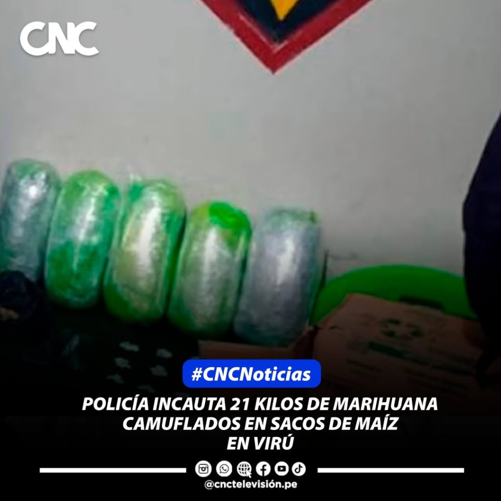 #Noticias || #LaLibertad || La Policía de Carreteras intervino un vehículo que transportaba 21 kilos de marihuana camuflados entre sacos de maíz a la altura del kilómetro 485 de la Carretera Panamericana Norte, en la zona del óvalo Tanguche, provincia de Virú. El operativo se realizó alrededor de las 6 de la tarde del último viernes, luego de que los agentes advirtieran la actitud sospechosa del conductor y su acompañante, quienes intentaron evadir el control policial.