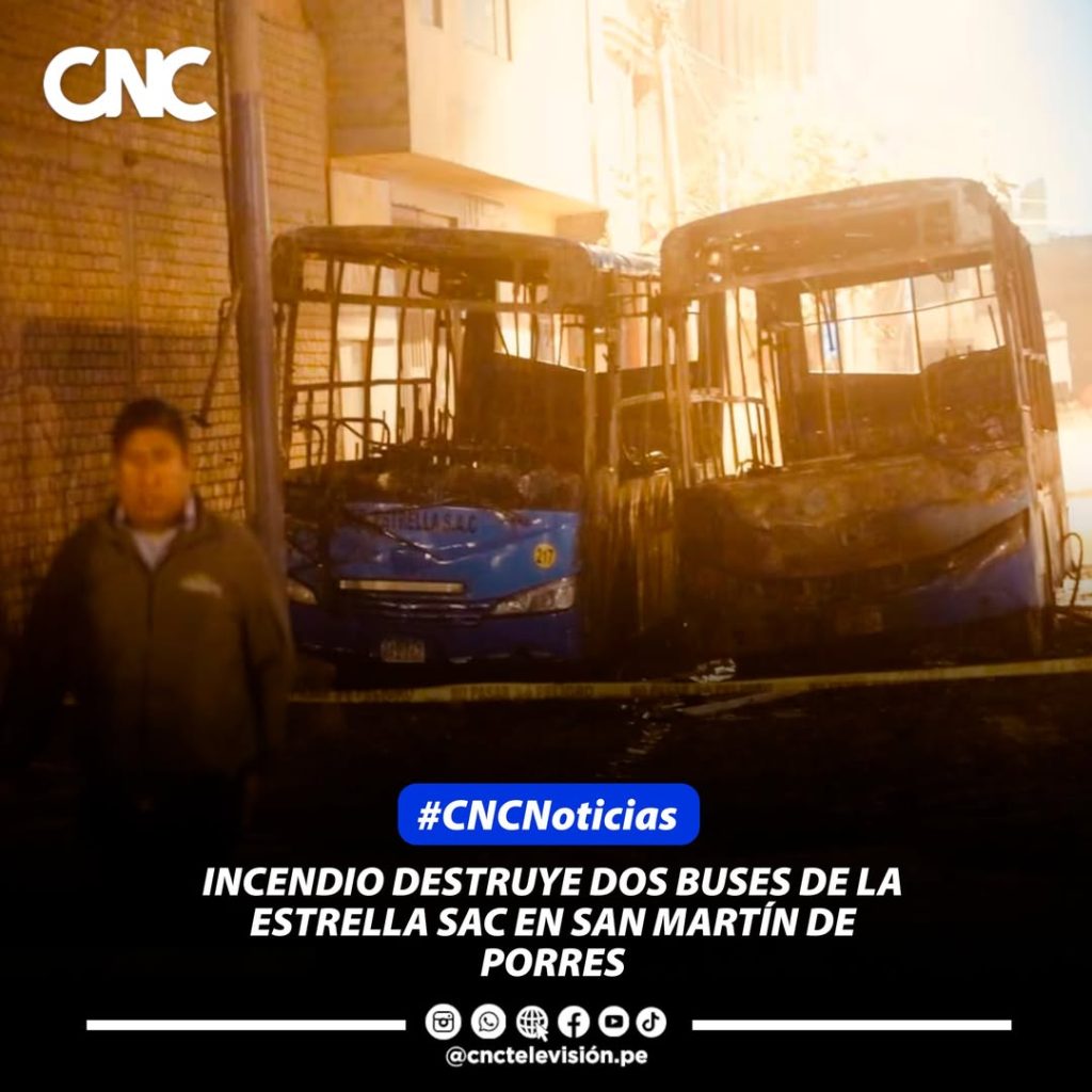 Un incendio consumió completamente dos buses de la empresa La Estrella SAC, que cubren la ruta Callao-Dominicos, en San Martín de Porres. El fuego se desató de manera repentina, dejando las unidades inutilizables y generando alarma entre vecinos y pasajeros.