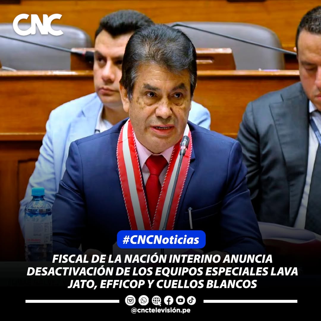 #Noticias || #Nacional || El fiscal de la Nación interino, Tomás Gálvez, anunció que los Equipos Especiales Lava Jato, EFFICOP y Cuellos Blancos serán desactivados en las próximas semanas. En una entrevista concedida a Canal N, afirmó que estas unidades “ya cumplieron su ciclo” y que la decisión será planteada ante la Junta de Fiscales Supremos, aunque señaló que, de no concretarse en ese espacio, puede ejecutar la medida directamente en su calidad de titular interino del Ministerio Público.