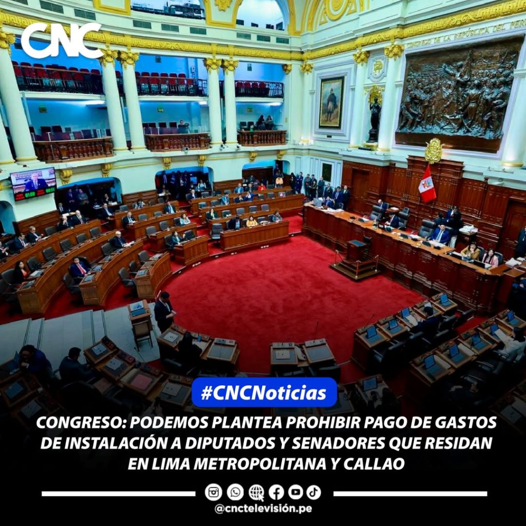 #Noticias #Nacional || La bancada de Podemos Perú, a iniciativa del congresista José Arriola, presentó el proyecto de ley 13489/2025-CR que propone prohibir el pago de gastos de instalación a diputados y senadores elegidos en las elecciones generales de 2026 que residan en Lima Metropolitana y la Provincia Constitucional del Callao. La iniciativa señala que esta asignación, equivalente a una remuneración mensual, fue creada para cubrir los costos de traslado e instalación de los parlamentarios que debían mudarse a la capital, justificación que no se aplica a quienes viven cerca de la sede del Poder Legislativo.