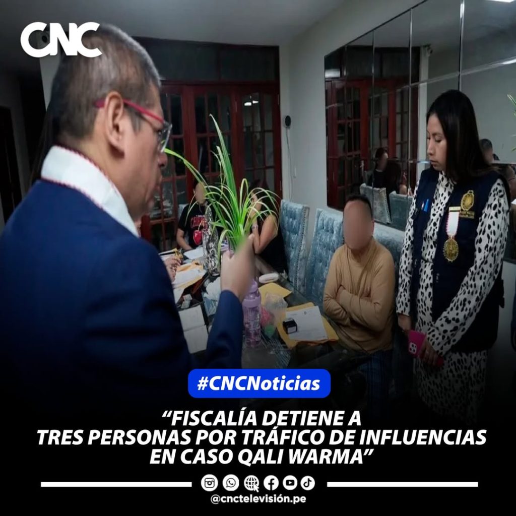 La Fiscalía Supraprovincial Especializada en Delitos de Corrupción de Funcionarios anunció la detención preliminar de tres investigados por su presunta participación en una red criminal dedicada al tráfico de influencias vinculada al programa Qali Warma, tras realizar allanamientos en 13 inmuebles.