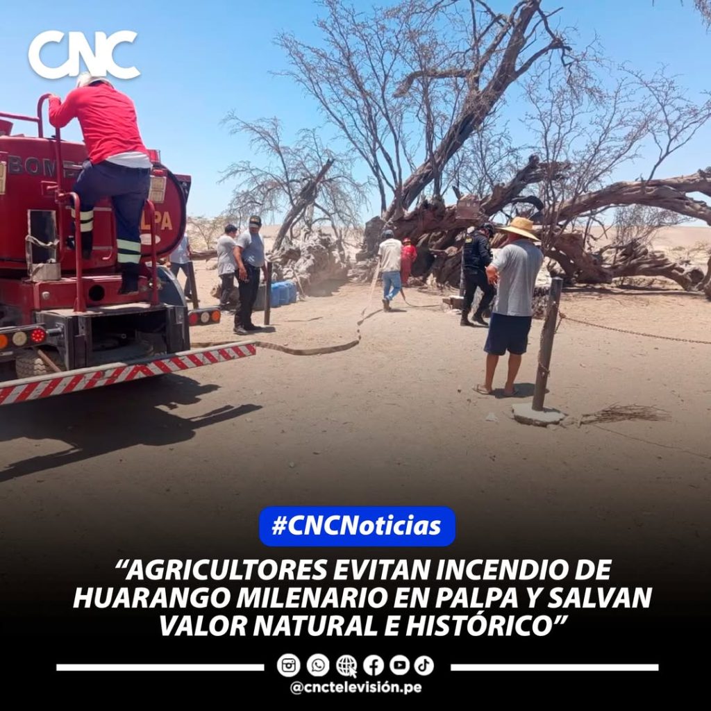 Un intento de incendio contra un huarango milenario en Palpa, uno de los árboles más antiguos y representativos de la región Ica, fue frustrado gracias a la rápida reacción de agricultores locales y autoridades. Los agricultores, al percibir humo en la zona, alertaron de inmediato a la Policía Nacional y al cuerpo de bomberos, lo que permitió controlar las llamas antes de que destruyeran este valioso patrimonio natural.
