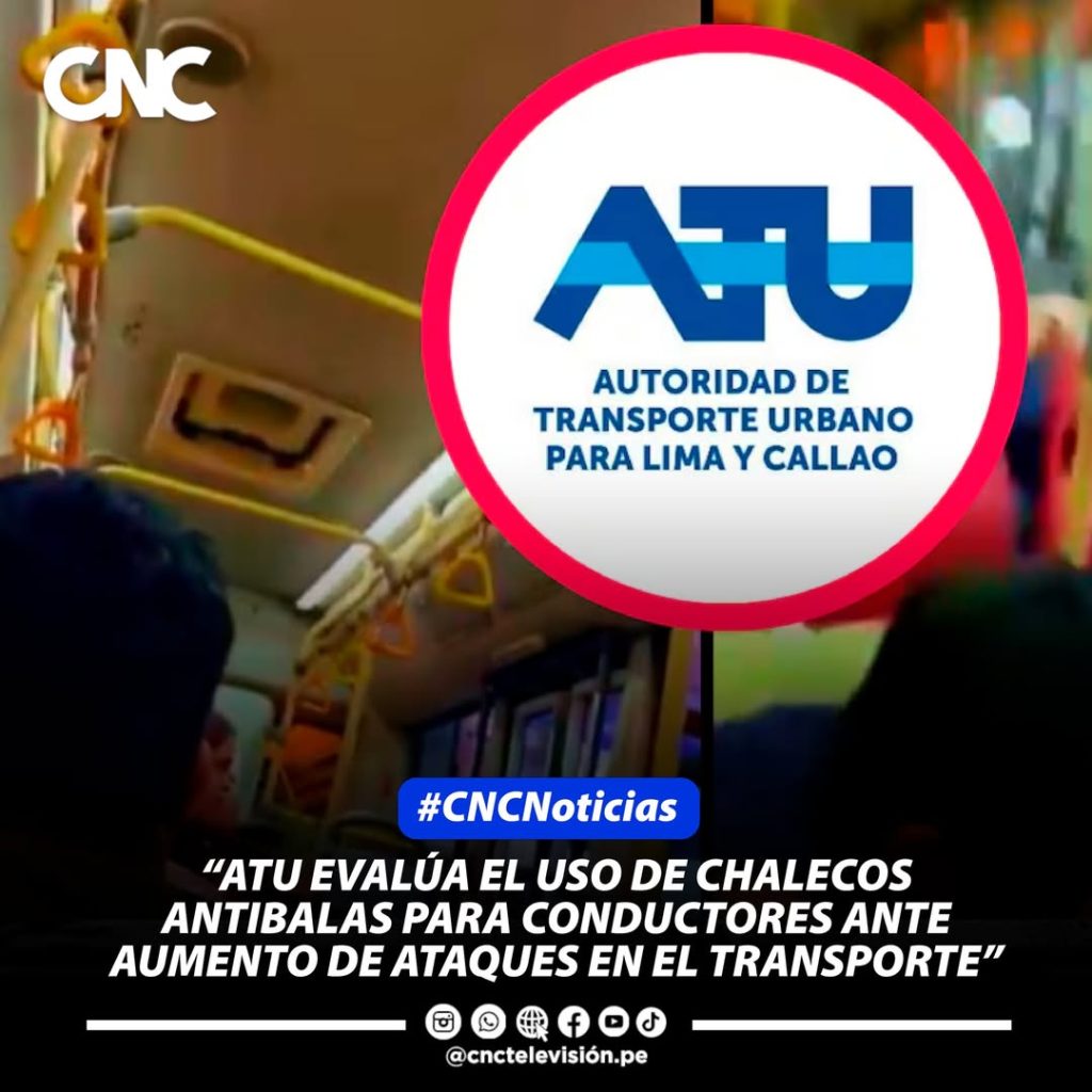 La Autoridad de Transporte Urbano para Lima y Callao (ATU) ha dejado abierta la posibilidad de que los conductores del transporte público utilicen chalecos antibalas como medida de protección, ante el incremento de amenazas y ataques reportados contra choferes y cobradores en diferentes corredores de la capital. El presidente de la ATU, David Hernández, señaló que la institución analizará todas las recomendaciones que presenten los órganos especializados en seguridad ciudadana para reforzar la protección de los operadores del servicio.
