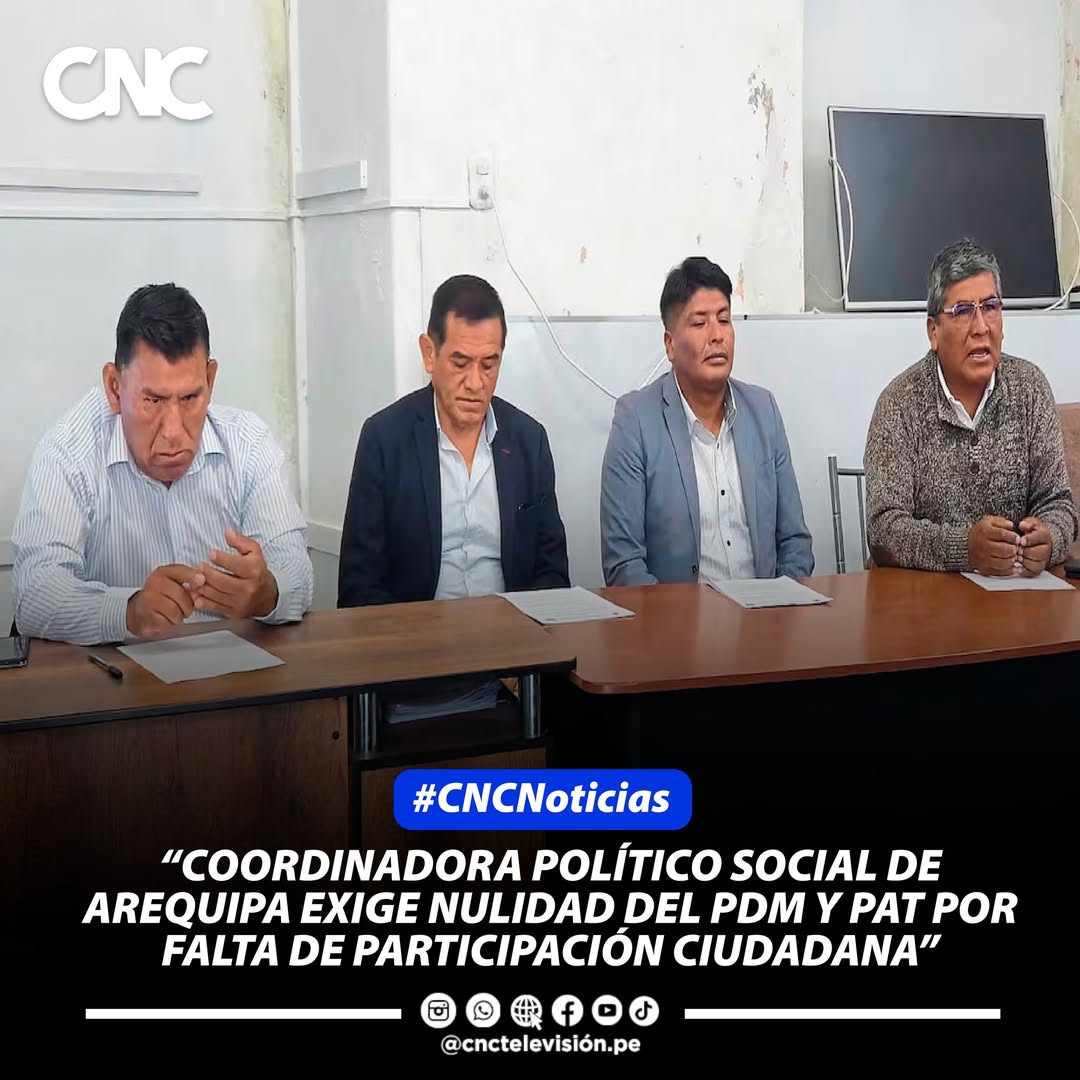 #Noticias || #Sociedad || “COORDINADORA POLÍTICO SOCIAL DE AREQUIPA EXIGE NULIDAD DEL PDM Y PAT POR FALTA DE PARTICIPACIÓN CIUDADANA”