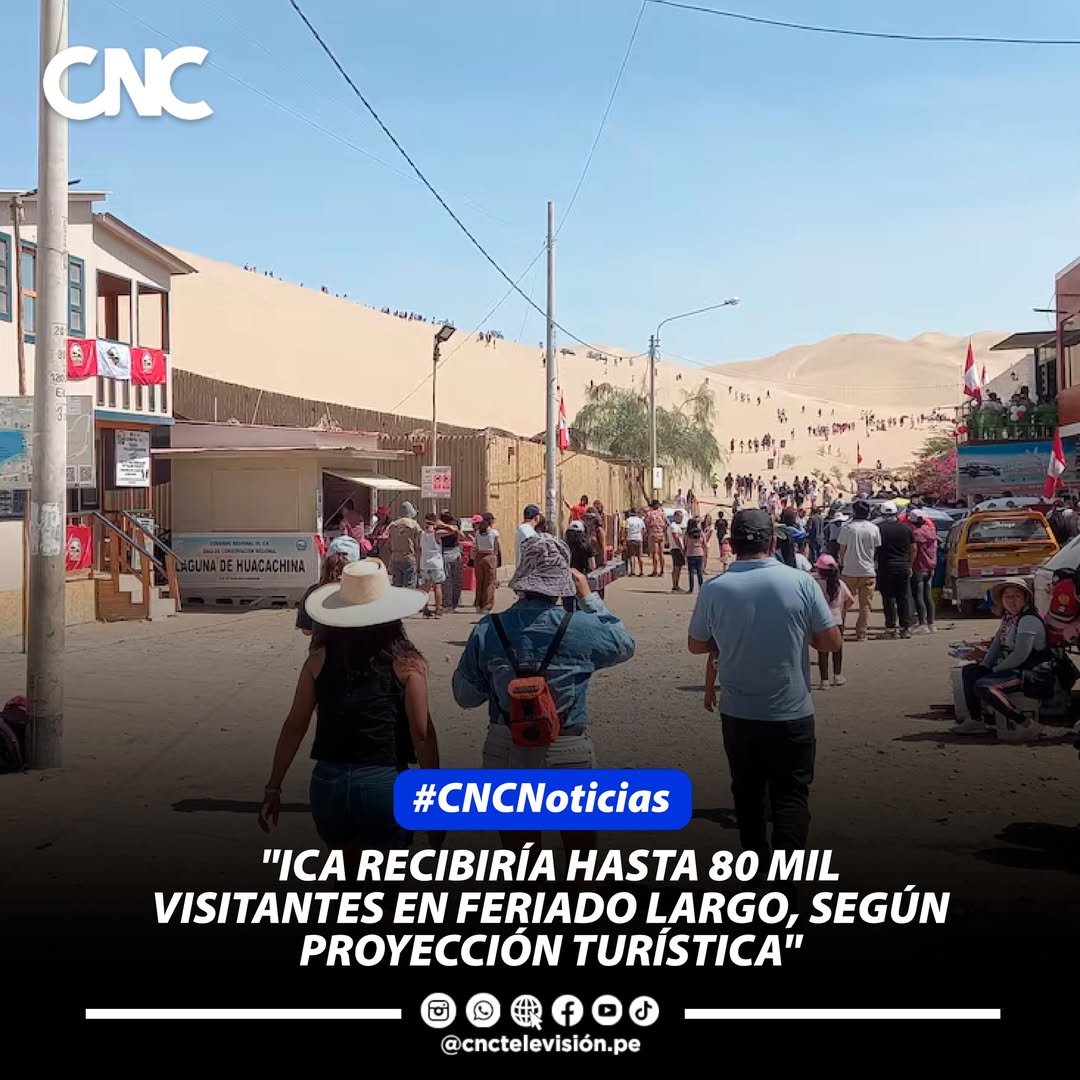 La región Ica prepara un intenso flujo turístico para el feriado largo, con una proyección de hasta 80 000 visitantes entre el viernes 5 y el martes 9 de diciembre, informó la Dirección Regional de Comercio Exterior y Turismo de Ica. Las reservas hoteleras en zonas clave como la laguna de Huacachina y la Reserva Nacional de Paracas ya alcanzaron el 100 por ciento, agotando disponibilidad.