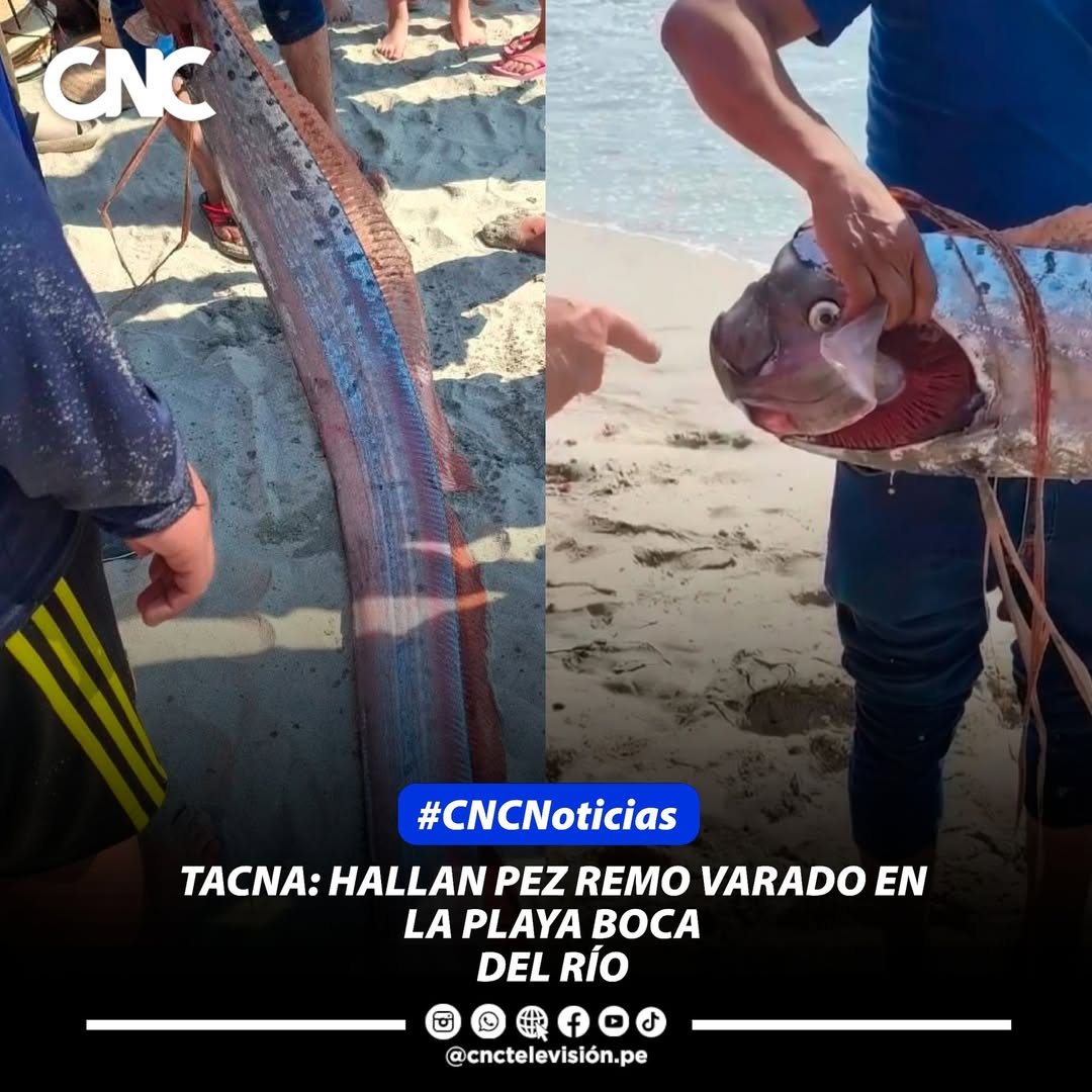 Un pez remo fue hallado varado la tarde del miércoles 7 de enero en la playa Boca del Río, en Tacna, generando sorpresa y preocupación entre vecinos y visitantes. Esta especie habita a grandes profundidades, por lo que su presencia en la orilla es poco común. Especialistas indican que el hecho podría estar relacionado con cambios oceanográficos, variaciones de temperatura o estrés ambiental. Las autoridades evaluarán las causas del inusual avistamiento.