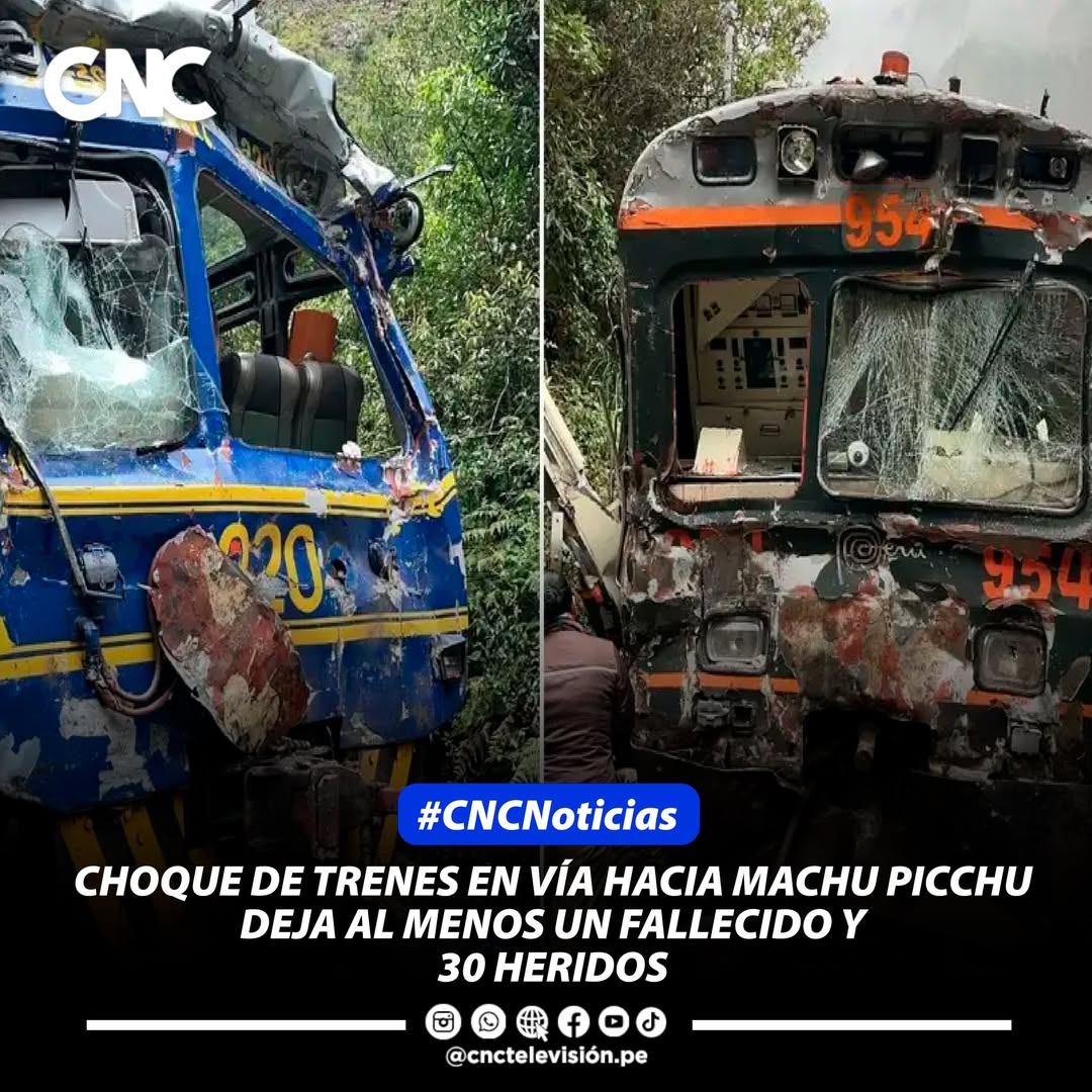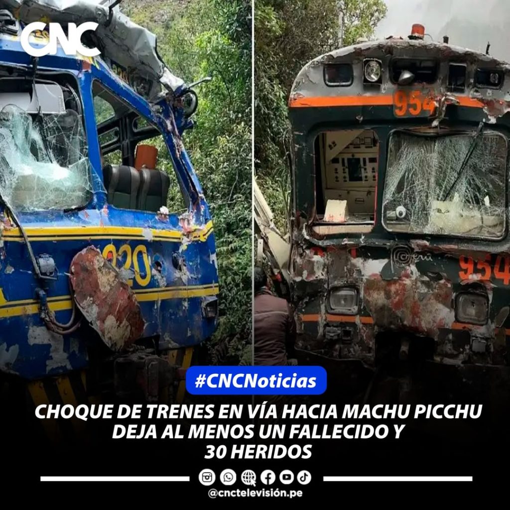 #noticias || Un grave accidente ferroviario se registró este martes en la ruta Ollantaytambo–Machupicchu, a la altura del sector Qorihuayrachina, cuando dos trenes de las empresas PeruRail e Inca Rail colisionaron frontalmente alrededor de la 1:20 p.m. El choque dejó al menos un fallecido y cerca de 30 heridos, además de decenas de turistas varados en la zona. El Ministerio de Salud activó los protocolos de emergencia y desplegó ambulancias y personal médico para evacuar a los afectados hacia centros de salud de Ollantaytambo, Urubamba, Maras y la ciudad del Cusco, mientras la Policía Nacional inició las diligencias para determinar las causas del accidente.