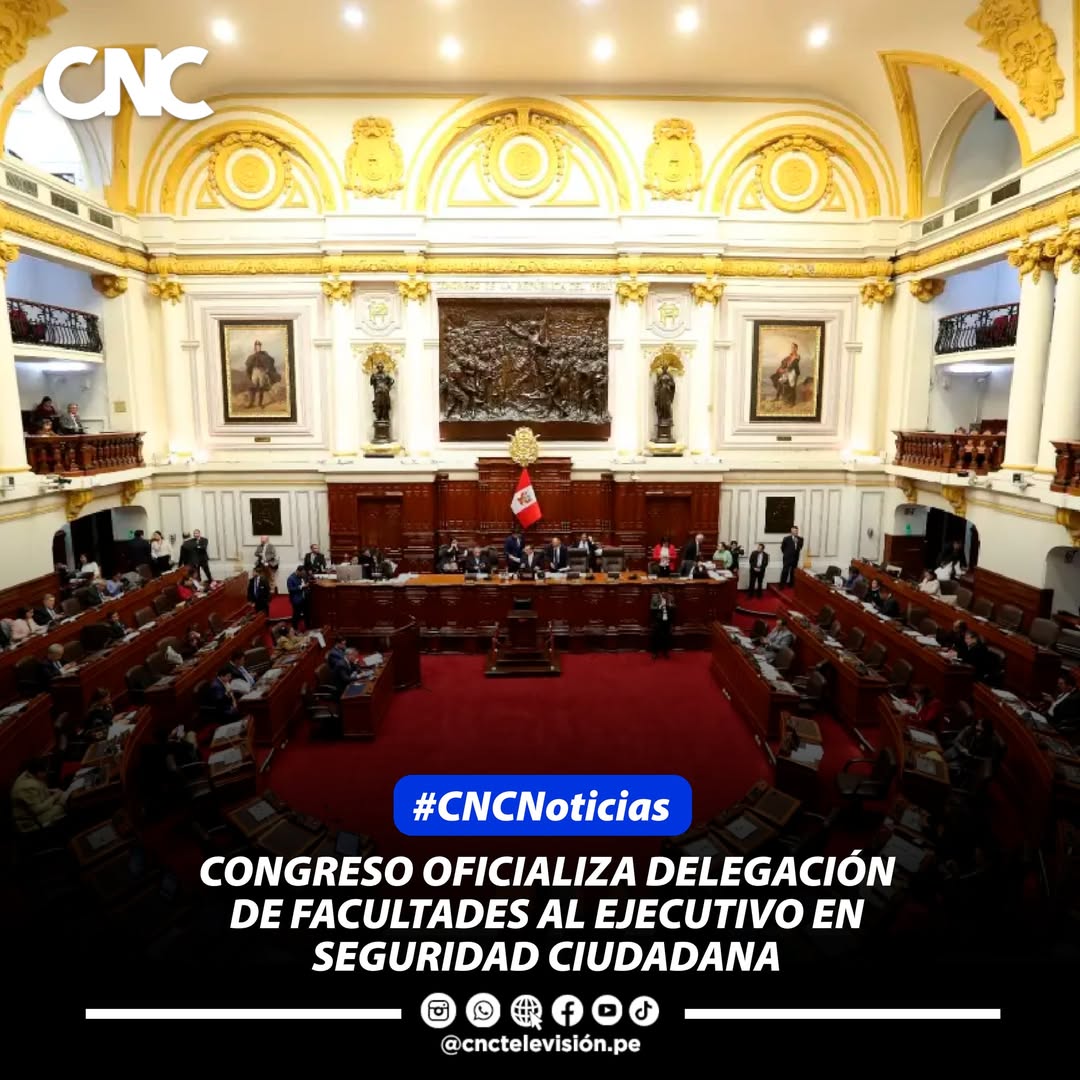 #Política || El Congreso de la República oficializó la Ley Nº 32527, publicada en el diario oficial El Peruano, mediante la cual se delega al Poder Ejecutivo la facultad de legislar por un plazo de 60 días calendario en materia de seguridad ciudadana y lucha contra la criminalidad organizada, crecimiento económico responsable y fortalecimiento institucional. En el ámbito de seguridad, el Ejecutivo podrá emitir 24 normas orientadas a reforzar la política contra la delincuencia, incluyendo la modificación del Código Penal para tipificar la tenencia ilegal compartida de armas de fuego, el endurecimiento de sanciones por resistencia a la autoridad y nuevas medidas frente a la minería ilegal y la filtración de información reservada en investigaciones penales.